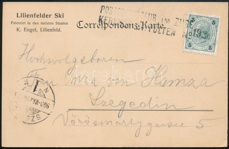 1900 Levelezőlap postakalauz bélyegzéssel Szegedre / Postcard with pos...
