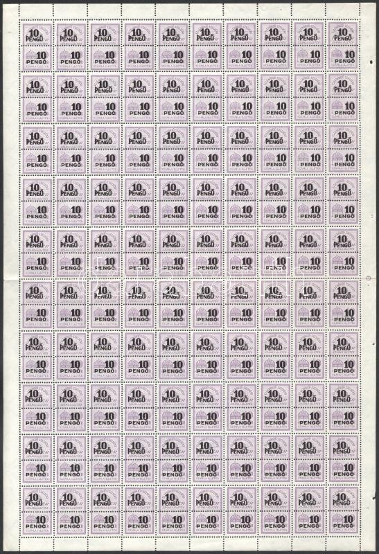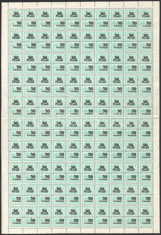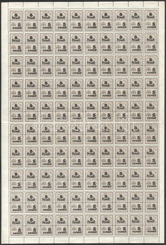 Számlailleték bélyeg 1945 5P, 10P, 20P és 50P 1-1 hajtott 100-as teljes ív (600.000) / 4 different fiscal stamps in folded complete sheets