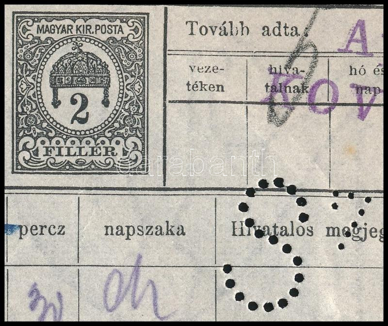 1917 Ritka 2f díjjegyes távirat Turul 1K bérmentesítéssel, Siemens S7 ...