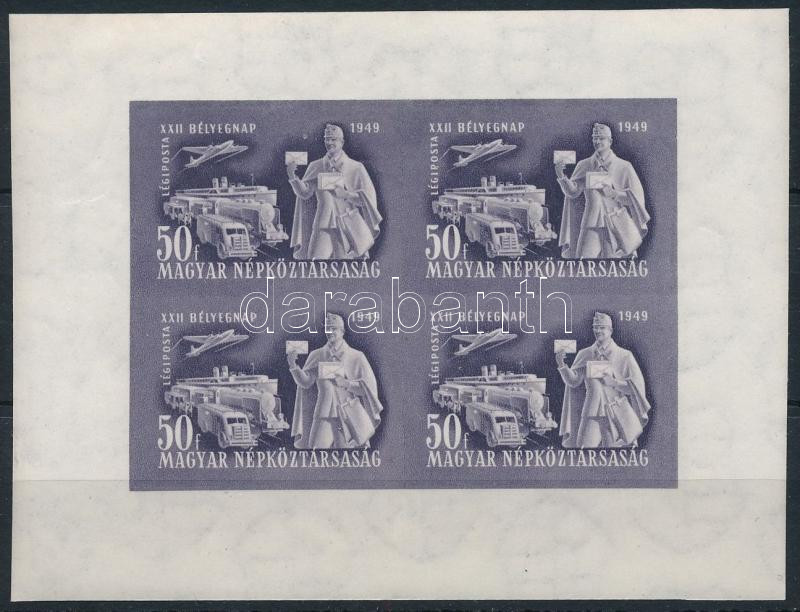 1949 Bélyegnap vágott kisív (100.000) (ráncok) / Mi 1065 imperforate mini sheet (creases)