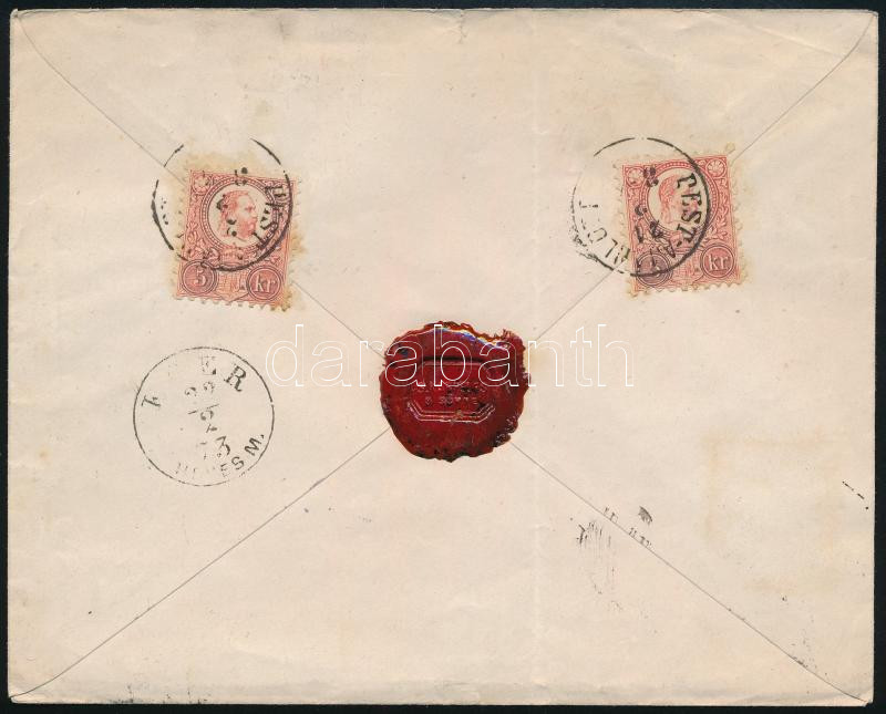 https://www.darabanth.com/en/45-Major-auction/45.1/Hungarian-philately-and-postal-history-Online/Engraved-issue~18738/1873-Reznyomat-3-x-5kr-ajanlott-levelen-on-registered-cover-PEST-AJANLOTT-Eger~II3451319