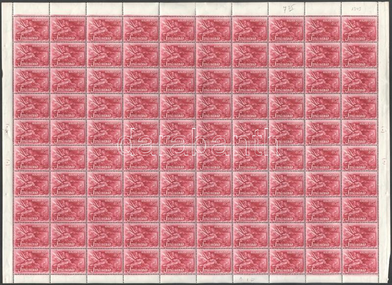 1953 Sztálingrád 40f hajtott teljes ív számvízjellel / Mi 1283 folded complete sheet, number in the watermark