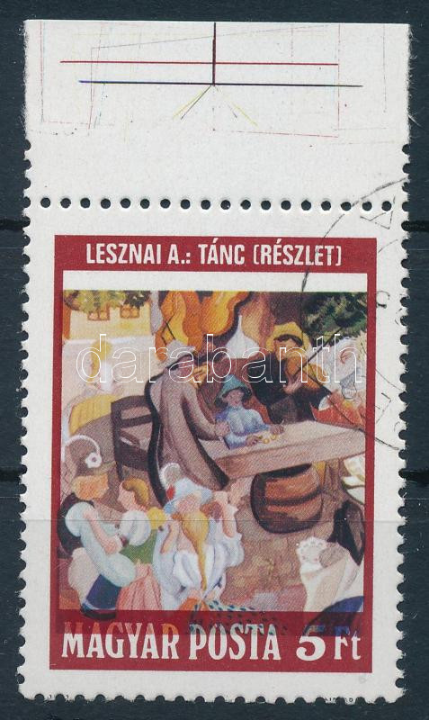 1981 Festmények XVIII. 5Ft ívszéli bélyeg felfelé tolódott bordó színnyomattal / Mi 3529 shifted red colour