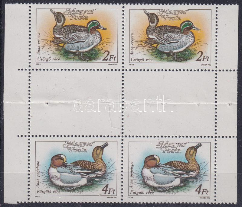 1988 Récék 2Ft és 4Ft ívközéprészes négyestömb (középen hajtott) / Mi 3972 + 3974 gutter block of 4 (folded in the middle)