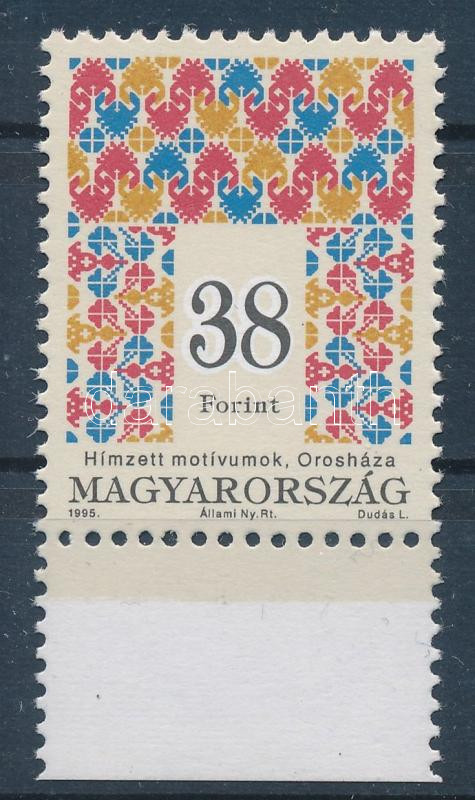 1995 Magyar Népművészet 38Ft ívszéli, matt-fényes papíron / Mi 4338 ma...