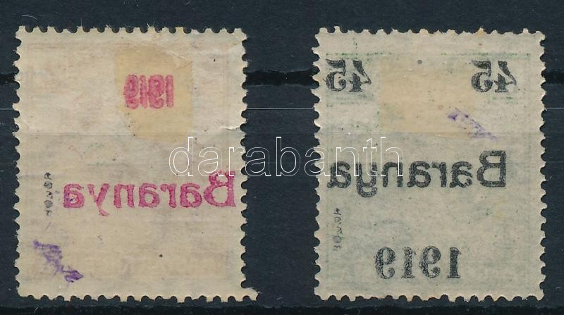 Baranya I. 1919 2 db bélyeg a felülnyomat erős gépszínátnyomatával, Bo...
