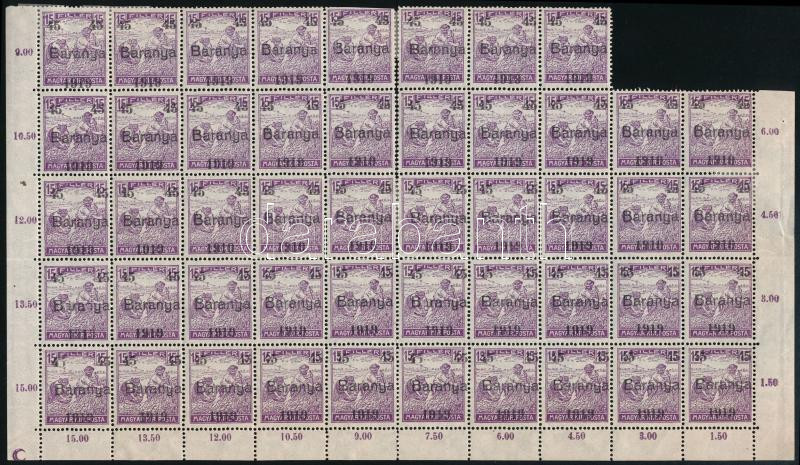 Baranya I. 1919 Arató 45/15f 48-as ívdarab (több helyen falccal megerősítve / strenghtened by hinge)
