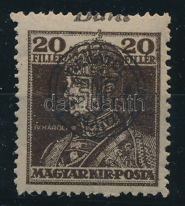 https://www.darabanth.com/en/45-Major-auction/45.1/Hungarian-philately-and-postal-history-Online/Occupation-and-local-issues-1919-1921-Kolozsvar~18862/Kolozsvar-1919-Karoly-20f-elcsuszott-felulnyomattal-a-BANI-alig-latszik-with-shifted-overp~II3449984