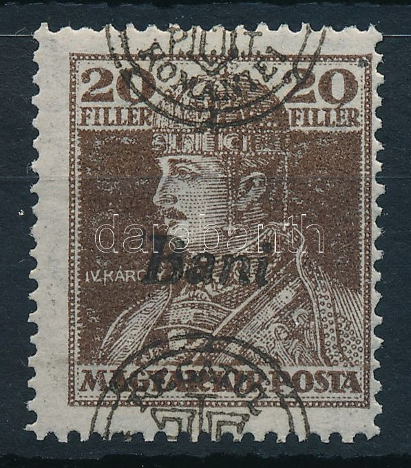 https://www.darabanth.com/en/45-Major-auction/45.1/Hungarian-philately-and-postal-history-Online/Occupation-and-local-issues-1919-1921-Nagyvarad~18864/Nagyvarad-1919-Karoly-20f-latvanyosan-elcsuszott-felulnyomassal-Mi-46-II-with-shifted-over~II3446805