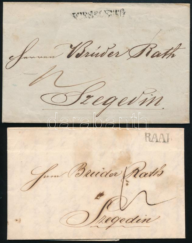 https://www.darabanth.com/en/45-Major-auction/45.1/Hungarian-philately-and-postal-history-Online/Prephilatelic-covers~18725/1845-2-db-Portos-level-Szegedre-kuldve-az-egyik-2-unpaid-cover-to-Szeged-RAAB-WIESELBURG-~II3438490