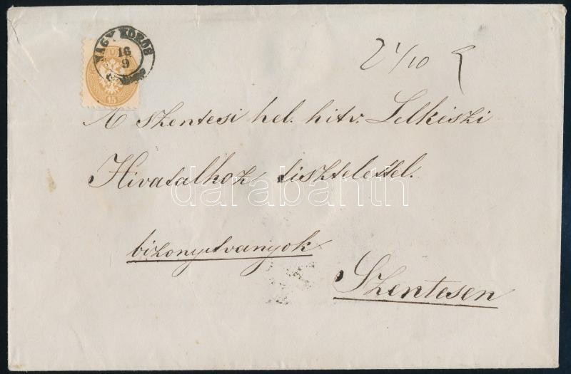 1864 15kr harmadik súlyfokozatú levélen. Ritka kiállítási darab! / 15kr on 3rd weight class cover "NAGYKŐRÖS" - Szentes