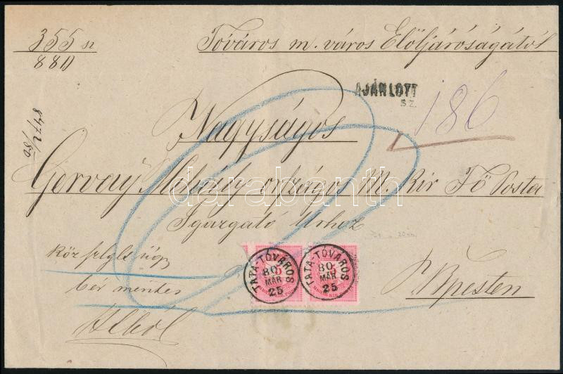 1880 2 x 5kr ajánlott levélen / on registered cover "TATA-TÓVÁROS...