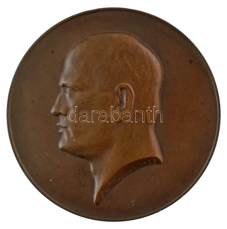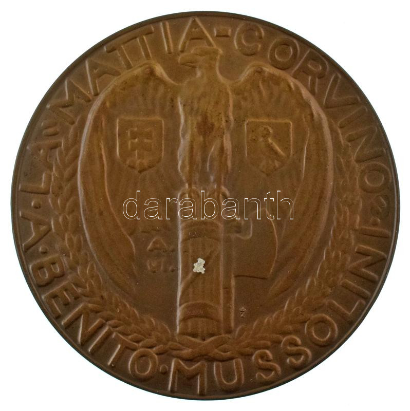 Italy 1928. "Benito Mussolini - Mathias Corvinus Society" "LA "MATTIA-CORVINO" A BENITO MUSSOLINI" double-sided, strucke, bronze commemorative medallion. Sign.: Livia de Kuzmik (50mm) C:AU