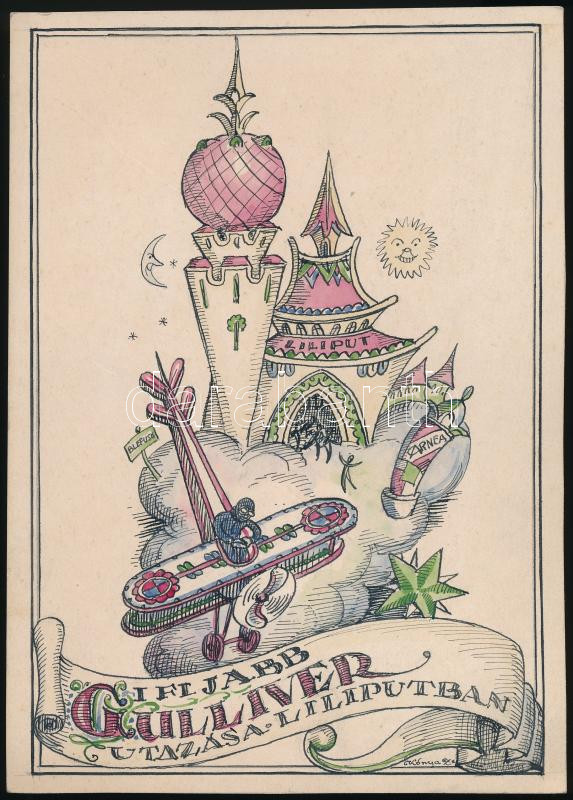 https://www.darabanth.com/en/45-Major-auction/45.1/Paintings-and-graphics/Classic-paintongs-and-graphics~19000/Konya-Zoltan-Konyvborito-terve-ifj-Gulliver-utazasa-Lilliputban-c-muvehez-Vegyes-~II3447042