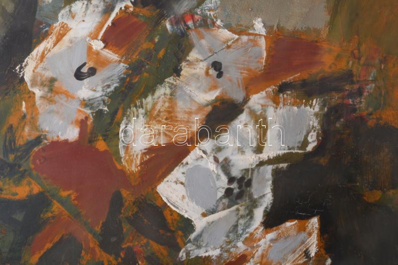 Klimó Károly (1936-): Csendélet. Olaj, farost, jelezve jobbra fent. Há... https://www.darabanth.com/en/45-Major-auction/45.1/Paintings-and-graphics/Contemporary-paintongs-and-graphics~18998/Klimo-Karoly-1936-Csendelet-Olaj-farost-jelezve-jobbra-fent-Hatoldalan-Kepcsarnok-Val~II3444410