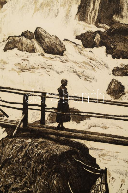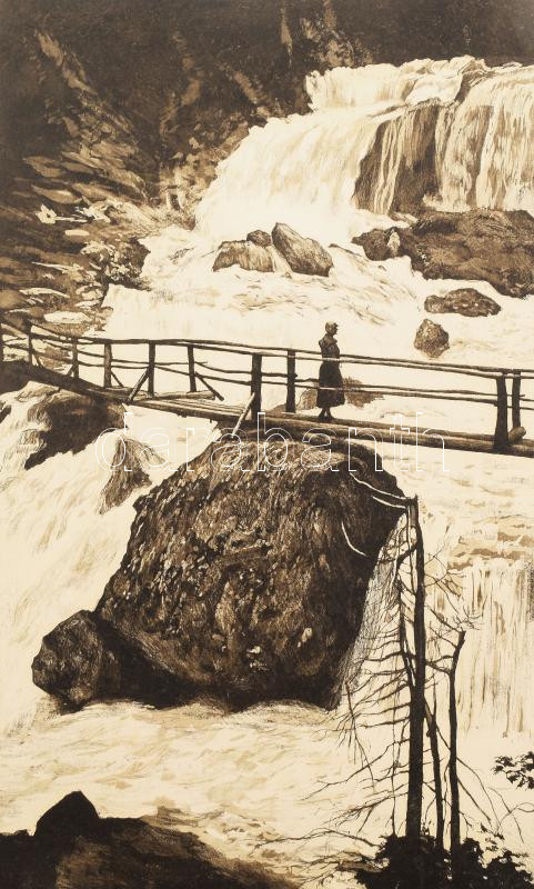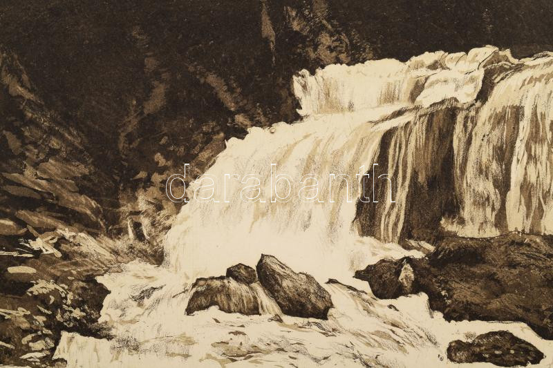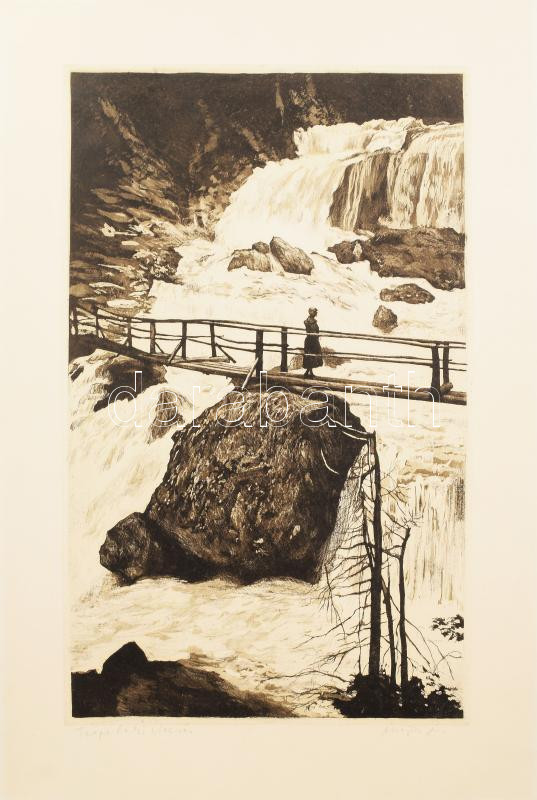 Major János (1934-2008): Tarpataki vízesés. Rézkarc, papír, jelzett. K...