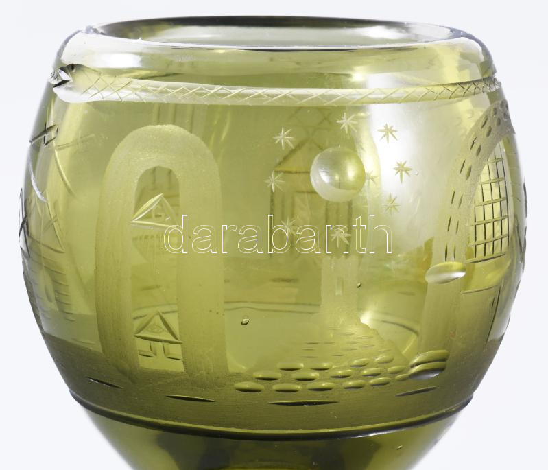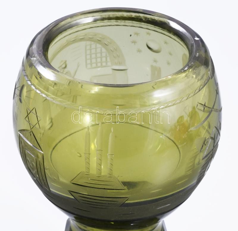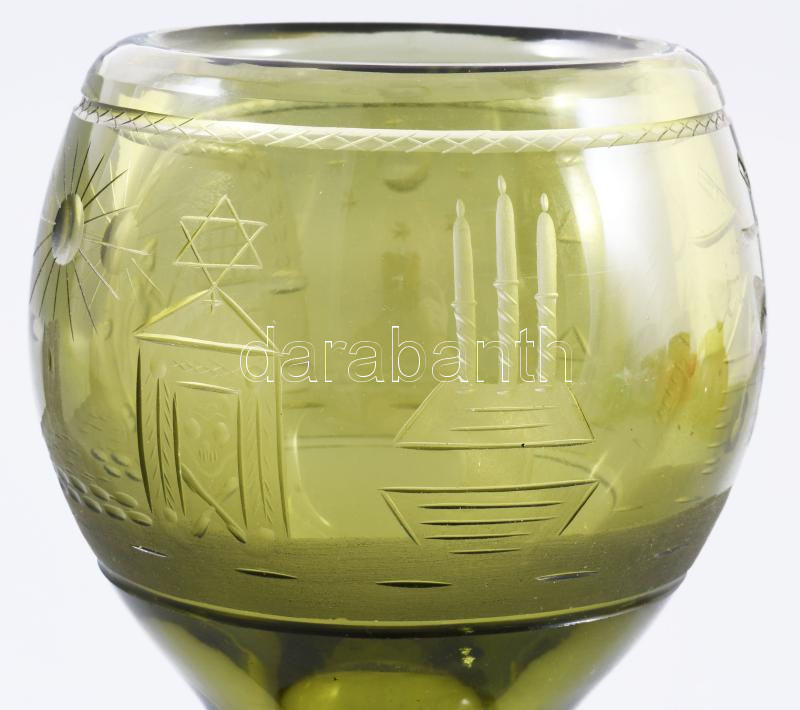 Description: Szabadkőműves kehely. Formába öntött, csiszolt, szabadkőműves szimbólumokkal díszített. Kristály. XIX. sz. 17 cm