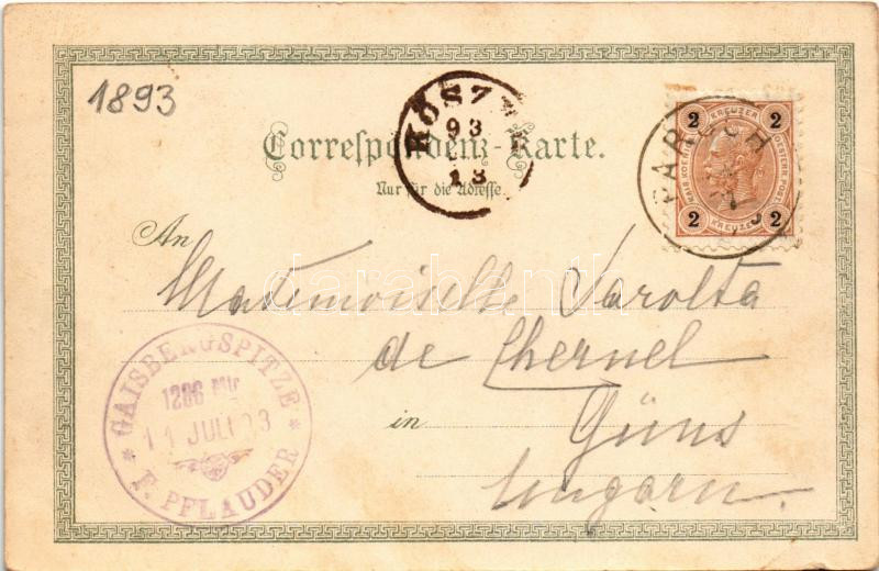 1893 Salzburg, Gruss vom Gaisberg, Zahnradbahn. Fried. Pflauder / cog-...