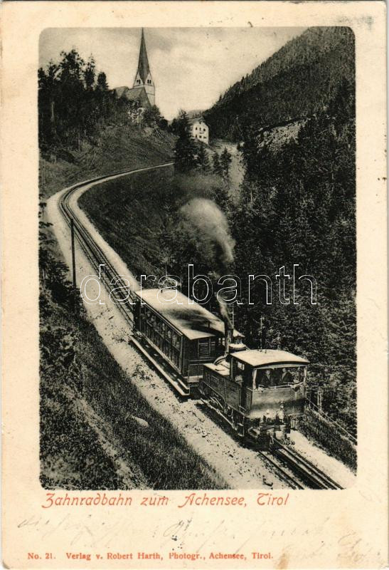 Achensee (Tirol), Zahnradbahn zum Achensee. Robert Harth No. 21. / cog...