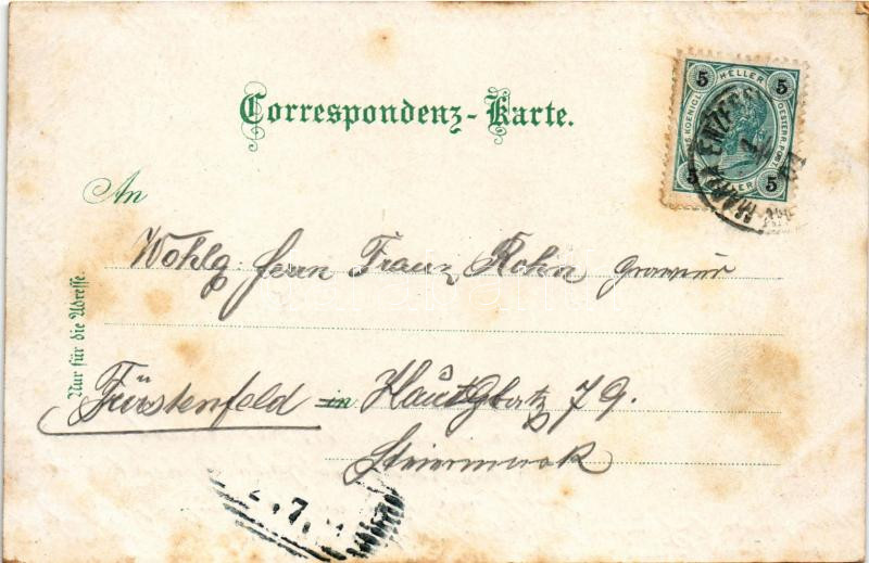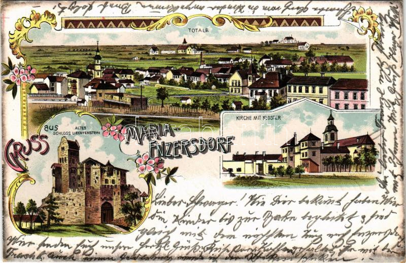 Maria Enzersdorf, Totale, Schloss Liechtenstein, Kirche mit Kloster / pilgrimage church, castle. Ludwig Graf Art Nouveau, floral, litho (fl)