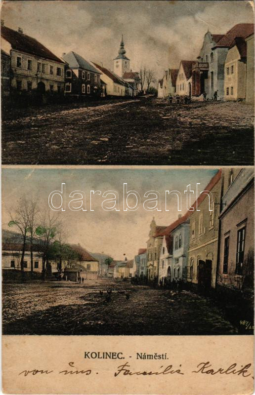 1923 Kolinec, Námestí / square, church, inn (fa)