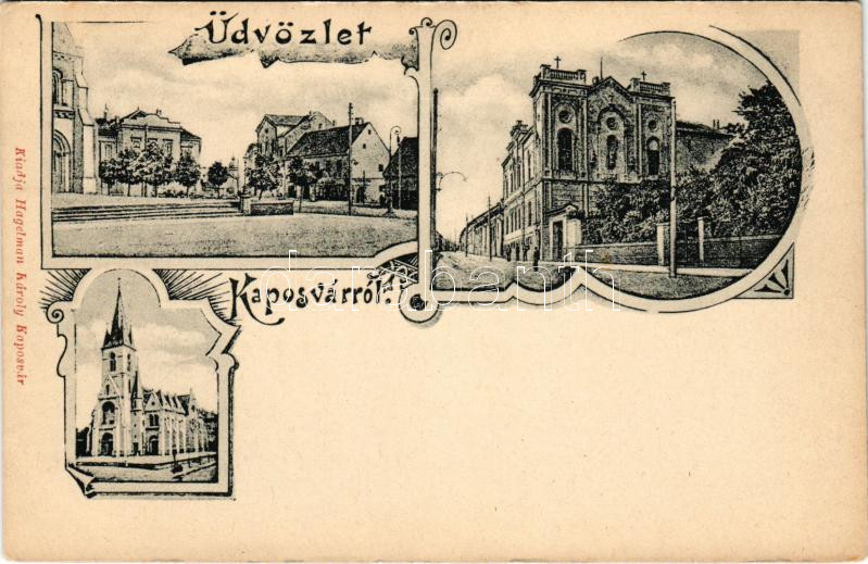 Kaposvár, Templom előtti tér, Római katolikus templom, Zárda. Hagelman Károly kiadása. Art Nouveau (EK)