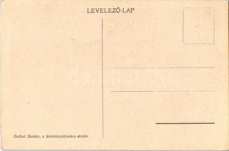 https://www.darabanth.com/en/45-Major-auction/45.1/Postcards/Propaganda-politics~18847/Garbai-Sandor-a-kormanyzotanacs-elnoke-Magyarorszagi-Tanacskoztarsasag-Hungarian-Soviet~II3413073