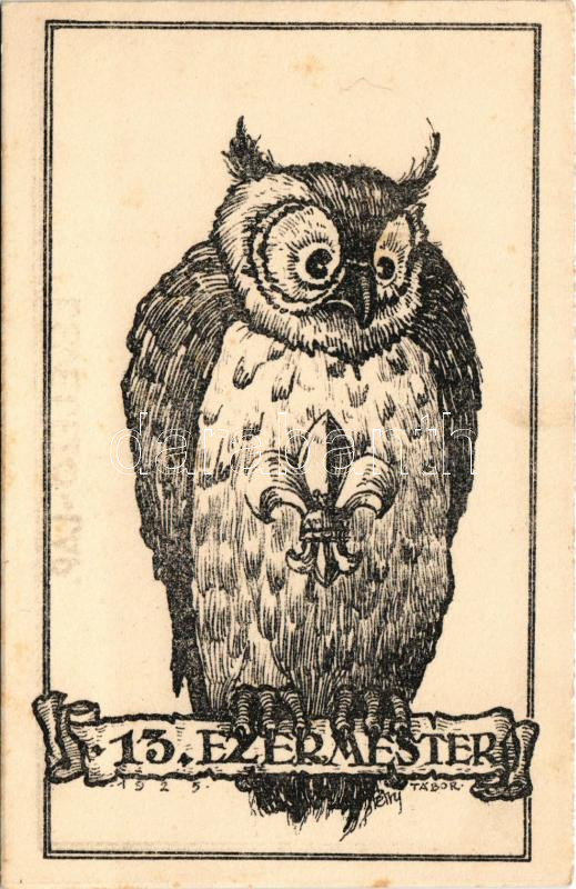 https://www.darabanth.com/en/45-Major-auction/45.1/Postcards/Scout~18827/13-ezermester-cserkeszcsapat-fulesbagoly-Hungarian-boy-scout-art-postcard-with-long-eared-owl-~II3427629