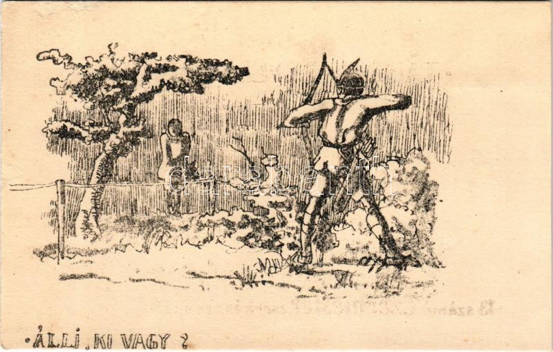 Állj, ki vagy? 13. számú Ezermester cserkészcsapat Tábori levelezőlap / Hungarian boy scout art postcard (fl)