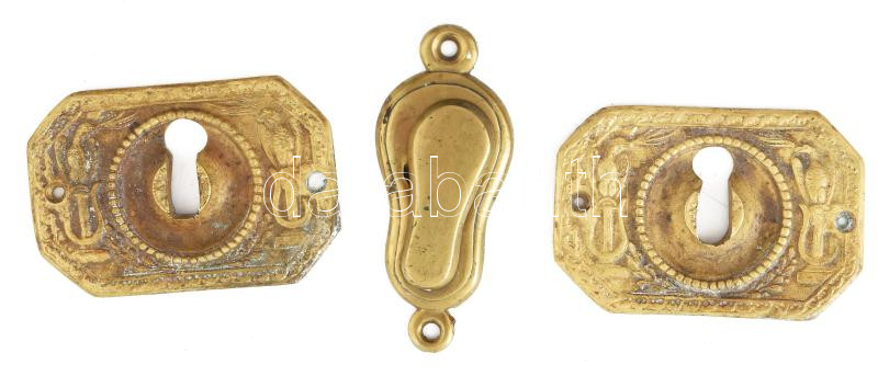 3 darab szecessziós réz zárcímke, h: 7,5-8 cm
