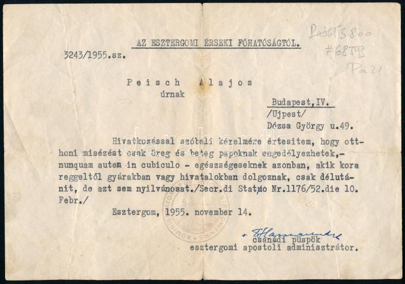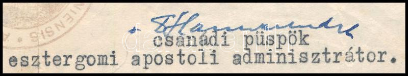1955 Hamvas Endre csanádi püspök autográf aláírt levele