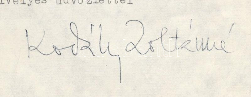 Kodály Zoltánné Péczely Sarolta (1940-) autográf aláírása levélen