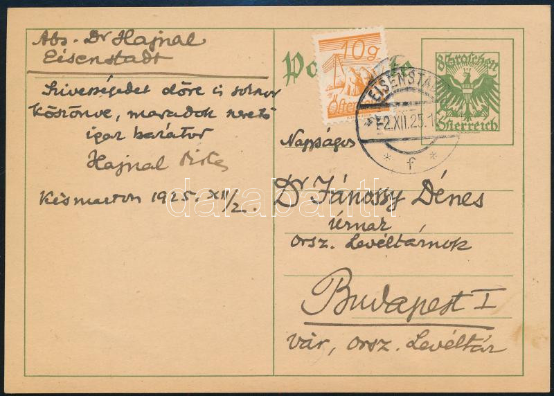 1925 Hajnal István (1892-1956) Széchenyi-díjas történész saját kézzel ... https://www.darabanth.com/en/450-Online-auction/450.0/Art-and-other-collectibles/Historical-documents-manuscripts~500023/1925-Hajnal-Istvan-1892-1956-Szechenyi-dijas-tortenesz-sajat-kezzel-irt-levele-kepeslapo~II2968176