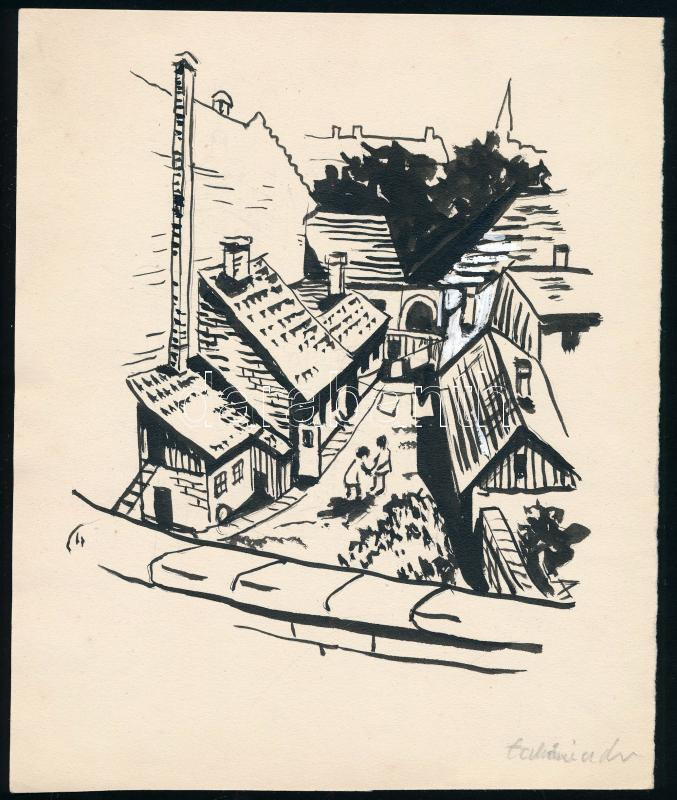 1933 Budapest, tabáni udvar, tus, papír, 20×17 cm
