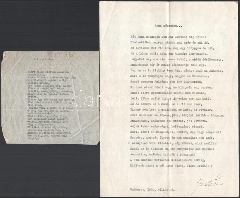 1968-1980 Erdőfi Imre dalszövegíró 2 db autográf aláírással ellátott szerzeménye + 2 db családtagjainak írt, aláírással ellátott, gépelt levele