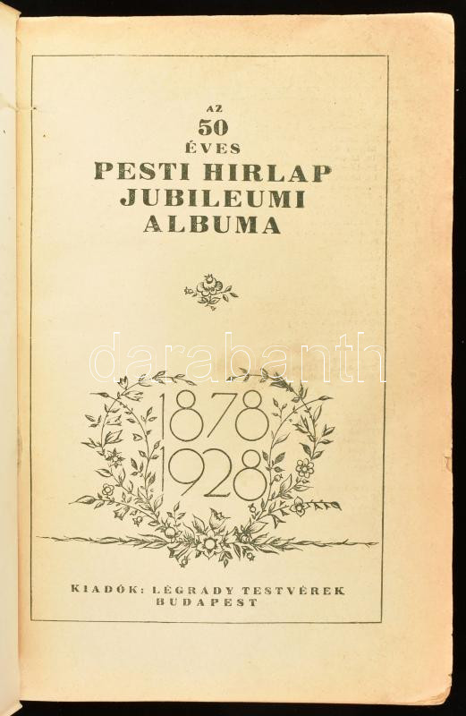 1928 Az 50 éves Pesti Hirlap jubileumi albuma 1878-1928. Bp., 1928, Lé... https://www.darabanth.com/en/450-Online-auction/450.0/Art-and-other-collectibles/Printed-Materials~2000024/1928-Az-50-eves-Pesti-Hirlap-jubileumi-albuma-1878-1928-Bp-1928-Legrady-1072-p-Szovegkozi~II2917076