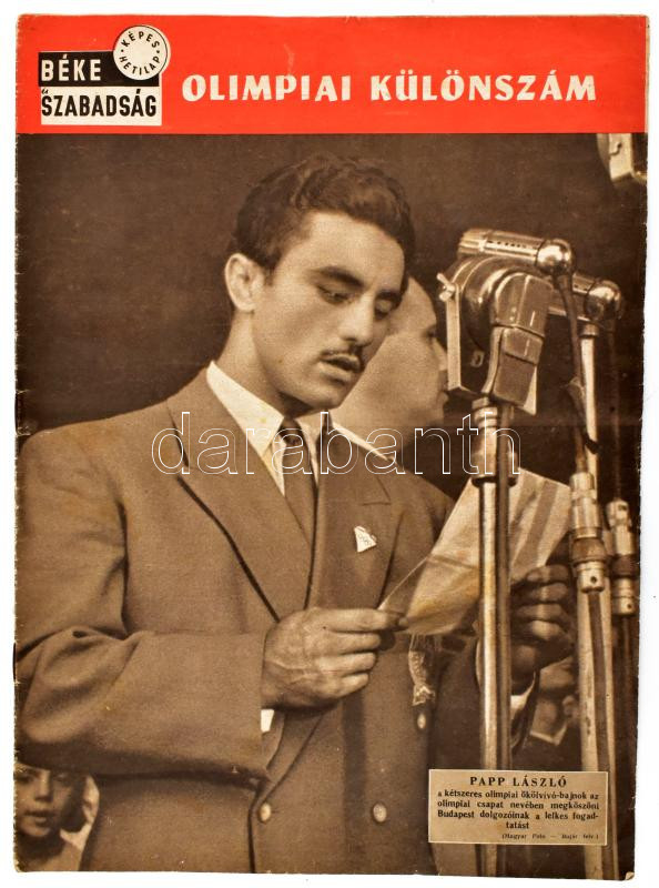 1952 Béke és Szabadság, olimpiai különszám (III. évf. 32. sz.), 1952. ... https://www.darabanth.com/en/450-Online-auction/450.0/Art-and-other-collectibles/Printed-Materials~2000024/1952-Beke-es-Szabadsag-olimpiai-kulonszam-III-evf-32-sz-1952-aug-10-a-cimlapon-P~II2987659