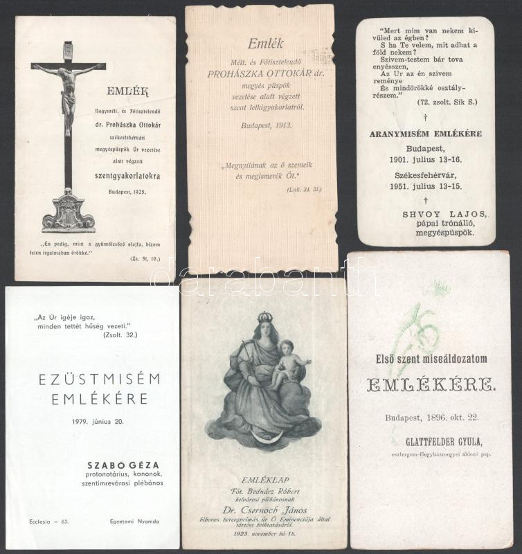cca 1910-1940 Prohászka Ottokár, Chernoch, Svoy, Glattfelder mise emlék szentképek 6 db