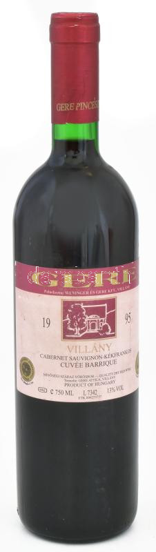 1995 Gere Villányi Cabernet Sauvignon - Kékfrankos Cuvée Barrique, bontatlan palack száraz vörösbor, 13%, pincében szakszerűen tárolt, 0,75 l.