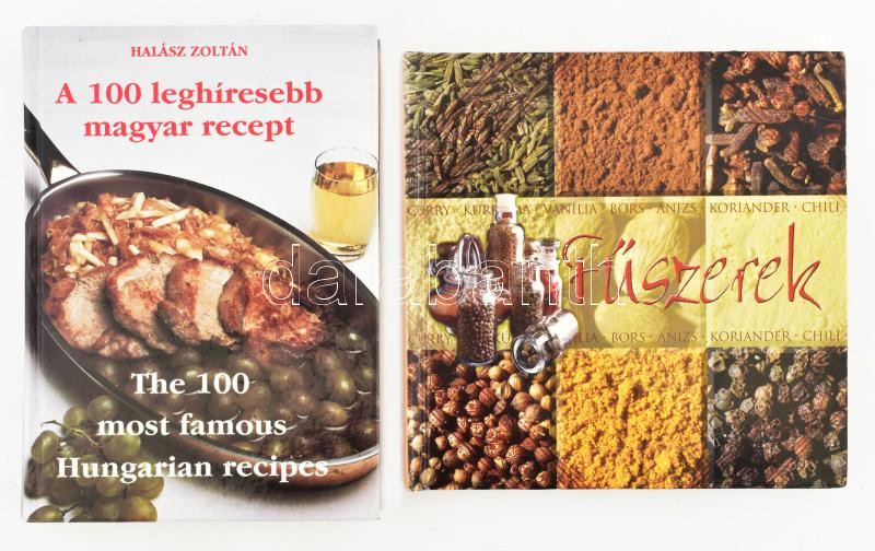 Description: Halász Zoltán: A 100 leghíresebb magyar recept. h. n. , 1991, Magyar Világ Kiadó. Kiadói kartonált papírkötésben. + Rob Alcraft: Fűszerek. hn., 2004., Kudos&Illia. Kiadói kartonált papírkötés.