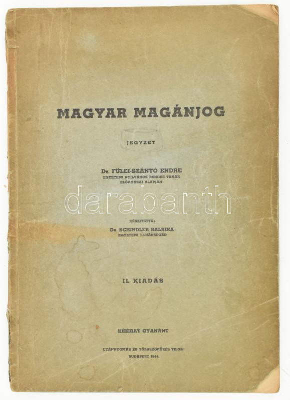 https://www.darabanth.com/en/450-Online-auction/450.0/Books/Books-Law~1000009/Dr-Fulei-Szanto-Endre-Magyar-maganjog-Jegyzet-Keszitette-Dr-Schindler-Balbina-Kezirat-~II2994241
