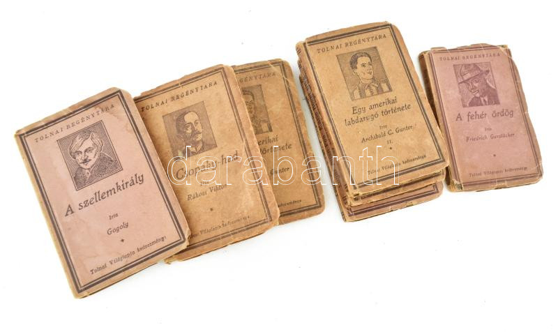 Description: 7 kötet a tolnai regénytárból: Edgar Allan Poe, Gogoly, Gunter, Rákosi Viktor és Friedrich Gertstäcker. Budapest, én., Tolnai Nyomdai műintézet. Papírkötés, vegyes állapotú.