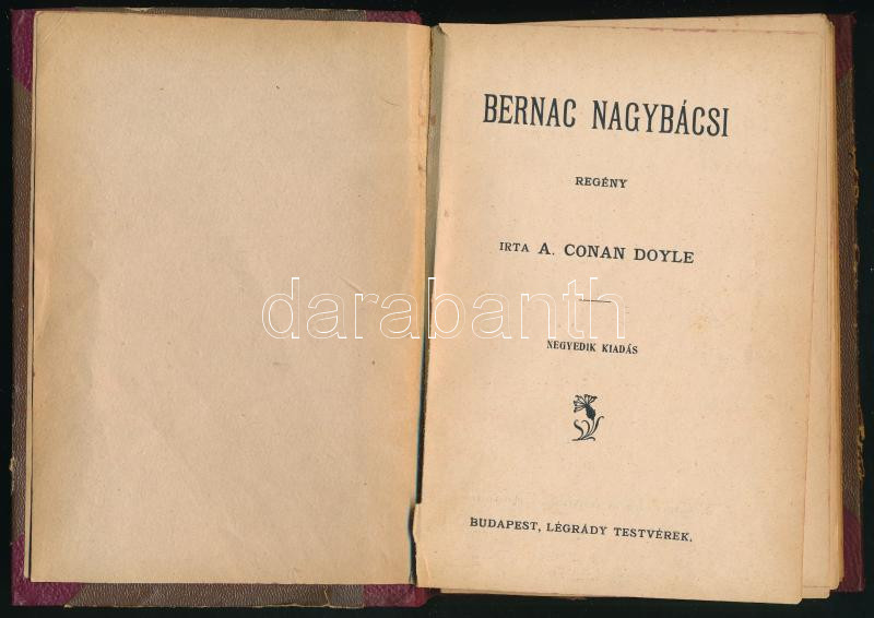 Conan Doyle, Arthur: Bernac nagybácsi. Bp., é.n., Légrády, (2)+154+(2)... https://www.darabanth.com/en/450-Online-auction/450.0/Books/Books-Other-rarities~2000028/Conan-Doyle-Arthur-Bernac-nagybacsi-Bp-en-Legrady-2plus154plus2-p-Negyedik-kiadas-Atk~II2962336