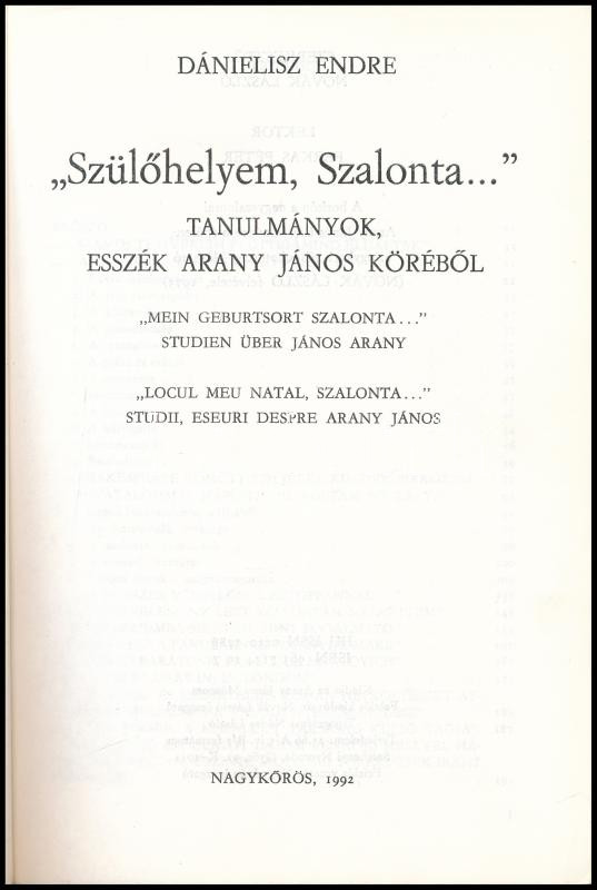 Danielisz Endre: "Szülőhelyem, Szalonta..." Tanulmányok, esszék Arany ... https://www.darabanth.com/en/450-Online-auction/450.0/Books/Books-Other-rarities~2000028/Danielisz-Endre-Szulohelyem-Szalonta-Tanulmanyok-esszek-Arany-Janos-korebol-Az-Aran~II2988756