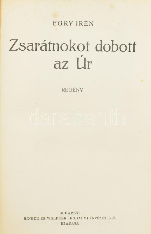 Egry Irén: Zsarátnokot dobott az Úr. Bp., [1939], Singer és Wolfner, 2... https://www.darabanth.com/en/450-Online-auction/450.0/Books/Books-Other-rarities~2000028/Egry-Iren-Zsaratnokot-dobott-az-Ur-Bp-1939-Singer-es-Wolfner-236plus4-p-Egyetlen-kiadas~II2993072