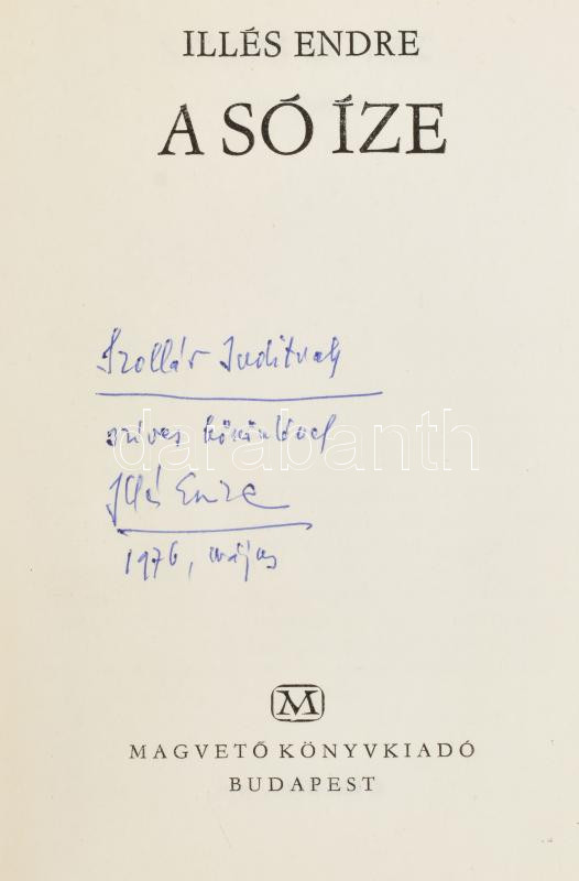 Illés Endre: A só íze. A szerző, Illés Endre (1902-1986) író által DED... https://www.darabanth.com/en/450-Online-auction/450.0/Books/Books-Other-rarities~2000028/Illes-Endre-A-so-ize-A-szerzo-Illes-Endre-1902-1986-iro-altal-DEDIKALT-peldany-Bp-~II2957996