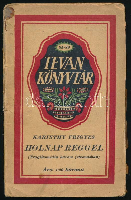 Karinthy Frigyes: Holnap reggel. (Tragikomédia három felvonásban). Mod... https://www.darabanth.com/en/450-Online-auction/450.0/Books/Books-Other-rarities~2000028/Karinthy-Frigyes-Holnap-reggel-Tragikomedia-harom-felvonasban-Modern-Konyvtar-85-89-BekC3~II2987910
