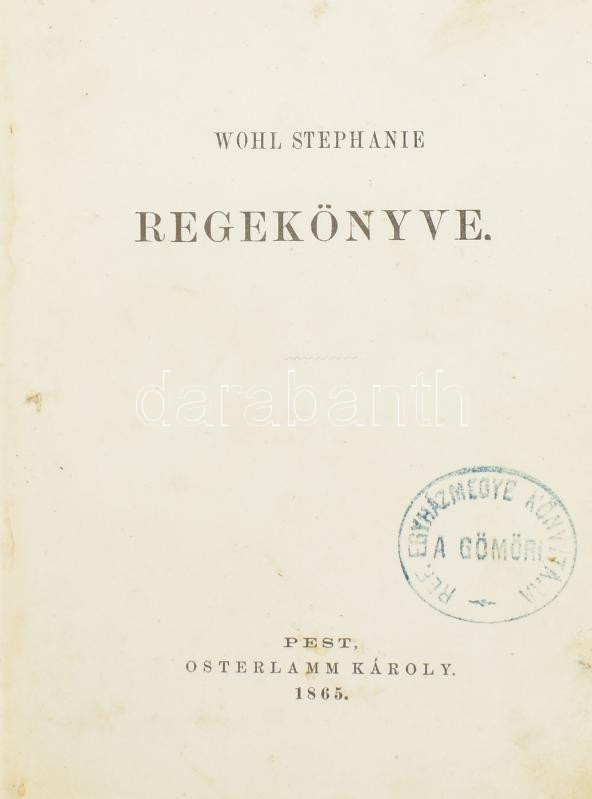 Wohl Stephanie Regekönyve. Pest, 1865, Osterlamm Károly,6+237+1 p. Kor... https://www.darabanth.com/en/450-Online-auction/450.0/Books/Books-Other-rarities~2000028/Wohl-Stephanie-Regekonyve-Pest-1865-Osterlamm-Karoly-6plus237plus1-p-Korabeli-aranyozott-gerincu-fC3~II2994248