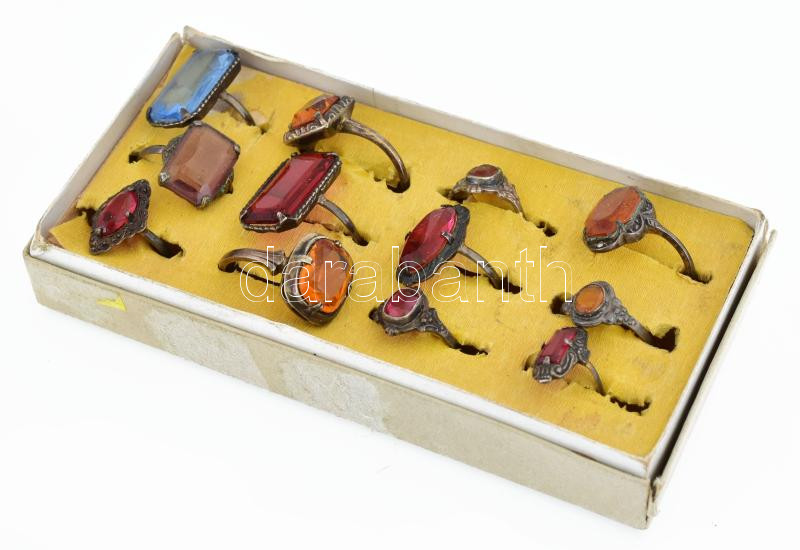 12 db ezüst (Ag) gyűrű ékszerész ügynök dobozban klf kövekkel