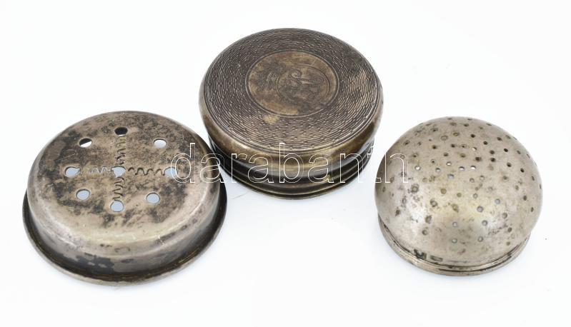 3 db ezüst (Ag) sószóró és egy egyéb üveg tető össz 37,15 g